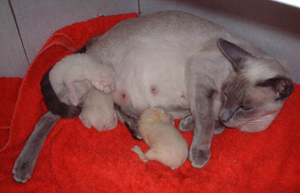 as I'm writing this) she produced three very nice big kittens