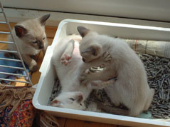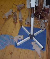 Libby's kittens, decide it's a good moment to weigh them as Libby