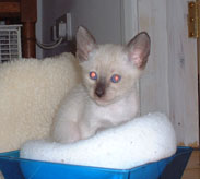 Libby is also very good, especially as her irritable bowel problems seem to have cleared completely since the kittens came. Libby's kittens are generally fine except for one, Number Eight (sounds like something out of 'The Prisoner' - this is still counting as if I have nine). He was shown to the vet because his weight-gain has been miserable for 5 days now. He has a heart murmur and may be fading, but I don't think I'm going to let this one get away from me yet. I had a kitten with a heart murmur in a previous litter of 8, and he started to fade just like this at weaning time, and he refused to wean. That was when we spotted the heart problem because I took him to the vet. The vet expected that one to fade and die, but I began supplementing him with KMR and he ended up the biggest and most beautiful kitten, though he weaned much later than the others, and still has a noticeable heart murmur. I hope I can do the same with this one, and when I gave him his milk just now he slurped up two whole syringes full which is an excellent sign: if he was feeling rotten he would have refused to eat. So I'm back onto supplementing and we'll just see how he goes. I'm also going to worm them with a very gentle wormer and that may also help as worms can cause heart murmurs, believe it or not! |