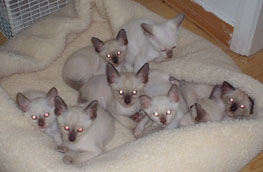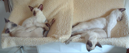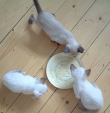 three Tonkinese, Pumpkin, Reckless and Teddy, are