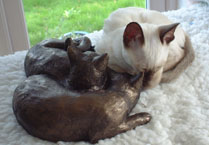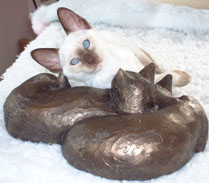 to cuddle up to the two bronze cats who live on the top of the