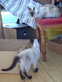 She spends alot of the time at the minute under the bed in her little basket or in my wardrobe with my shoes... if I go to get her out she purrs and lets me stroke her then she will come in the lounge for five minutes or so have a little look round meow quite a lot then go back under the bed... she seems very scared by sudden noises people coming into the other flats and shutting the door etc... the tv, and even me coughing or sneezing... although she seems to be getting used to the tv and doesn't seem to be so jumpy as she was..I have turned the tv down a little so its not too loud for her ears... |